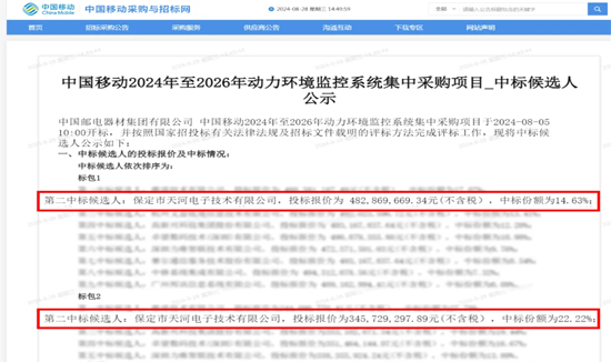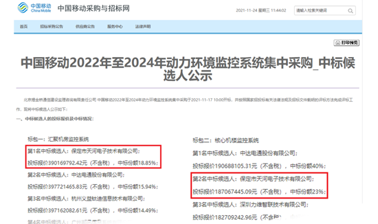 天河電子中標(biāo)中國移動2024-2026動環(huán)監(jiān)控集采項(xiàng)目