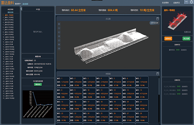 通過激光檢測器對料場進行掃描,通過算法快速計算出物料體積。